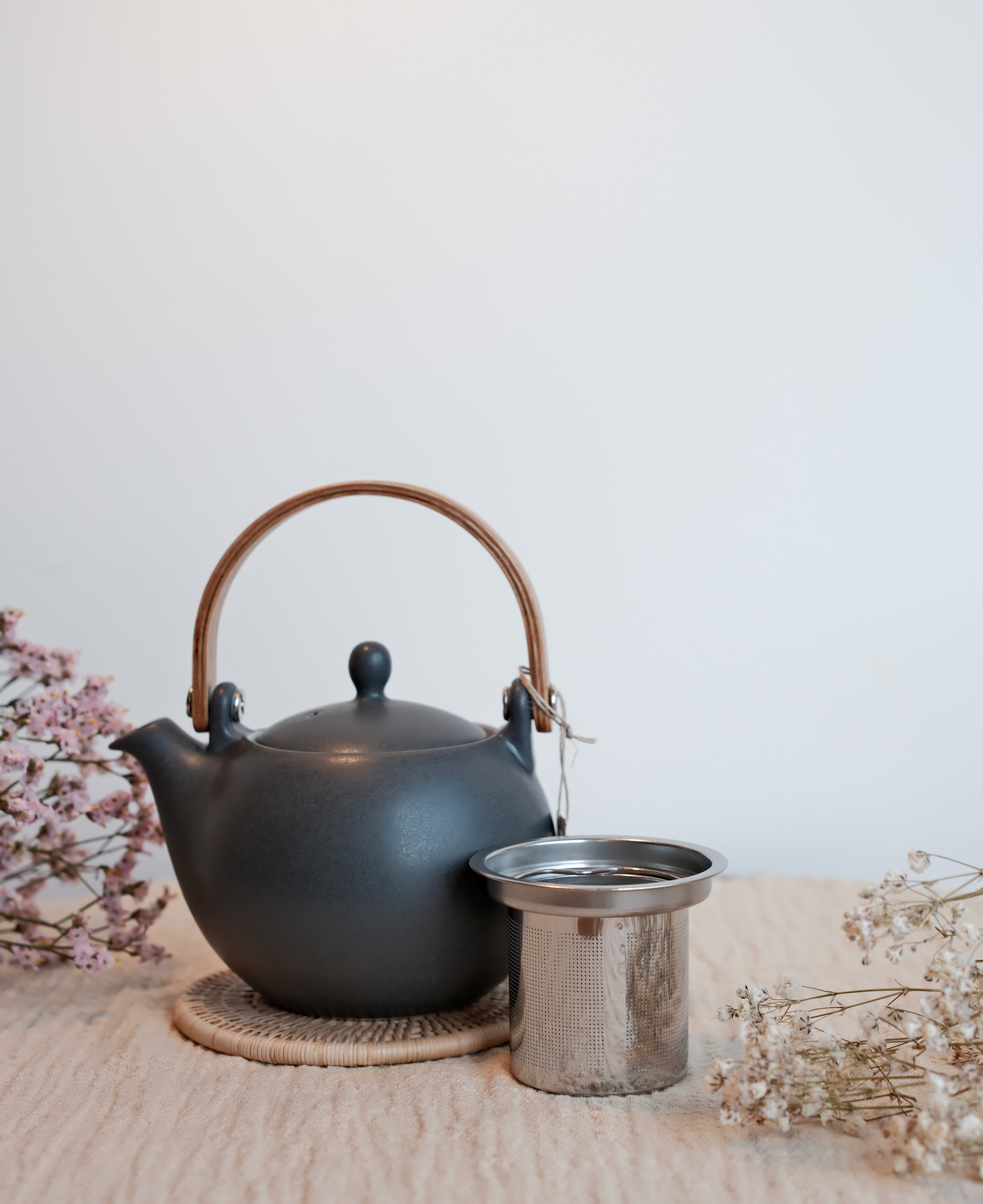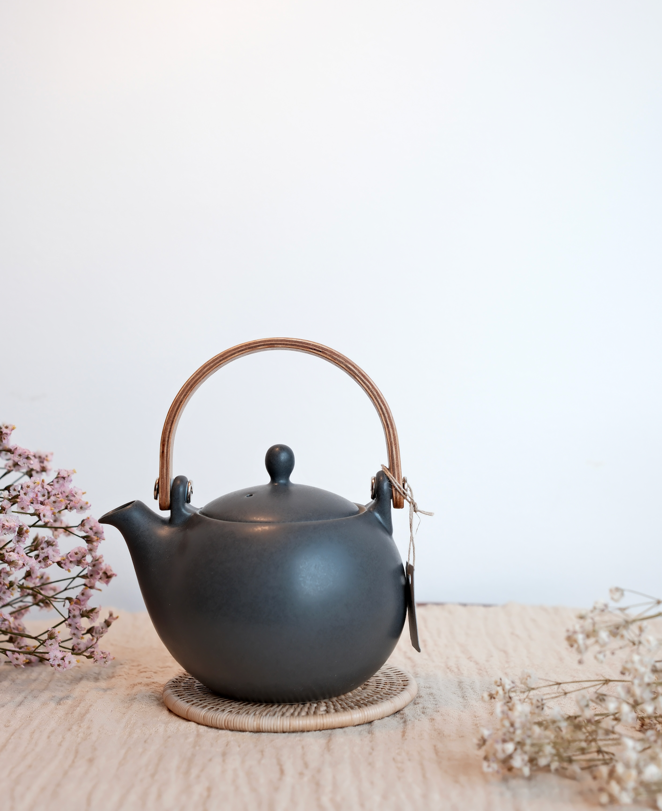 Teapot: Body – porcelain; Handle – natural wood; Strainer – stainless steel