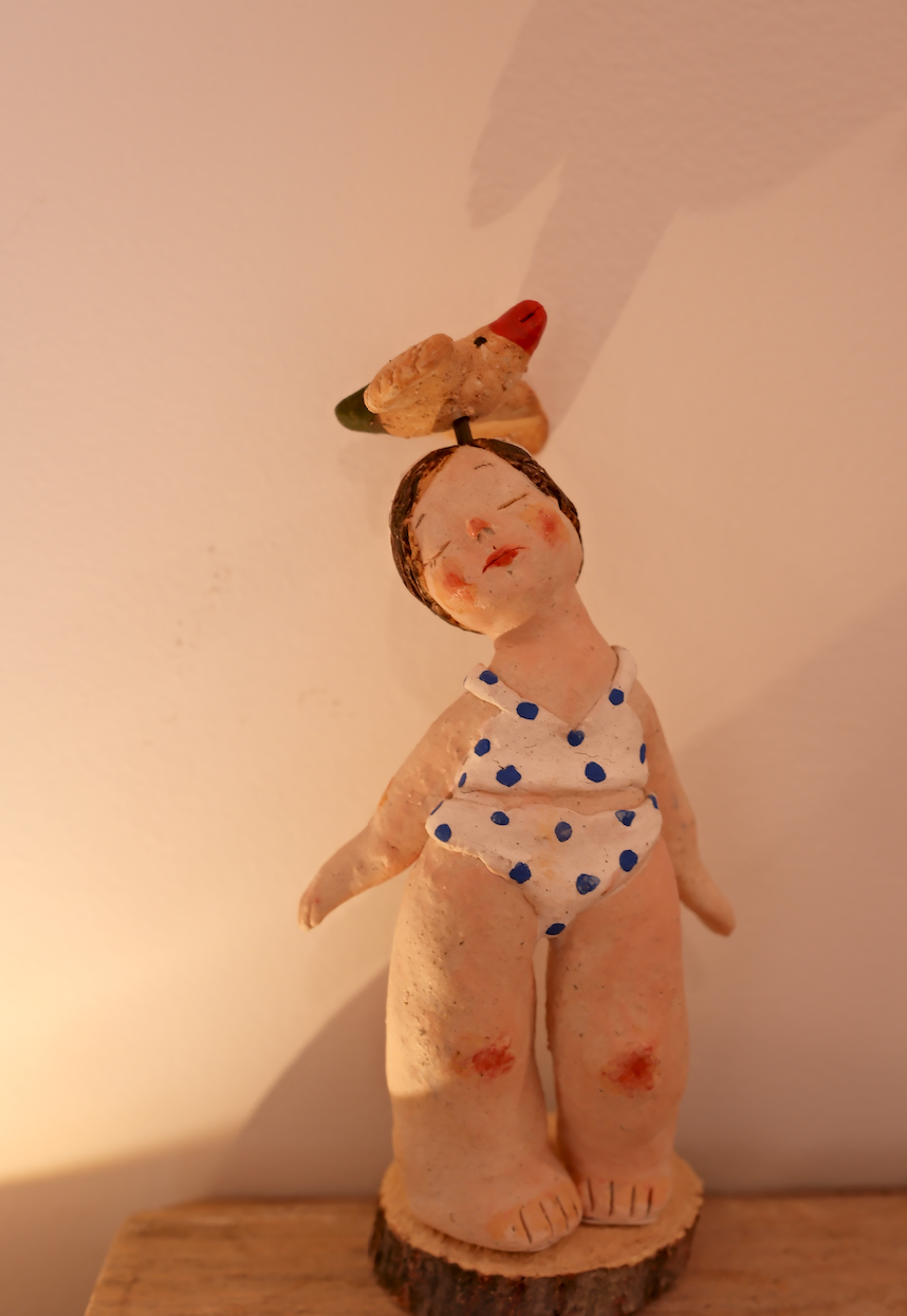 From painting to illustration to three-dimensional figures, my child characters embody raw emotions — joy, sorrow, fear, and laughter. They are the shadows of my own childhood: rough yet real, bringing me peace and a way to keep expressing the world in my own way.