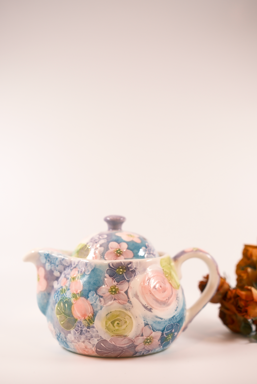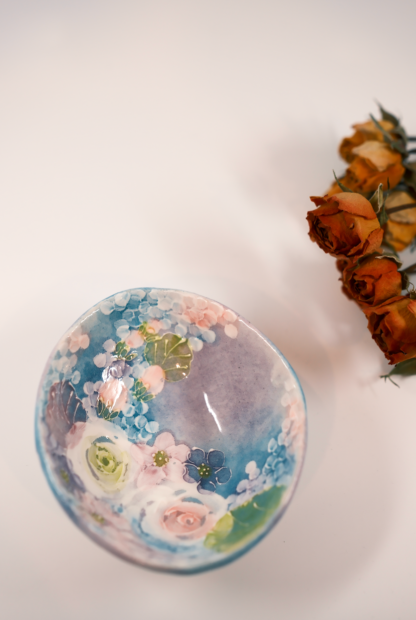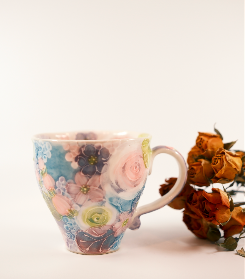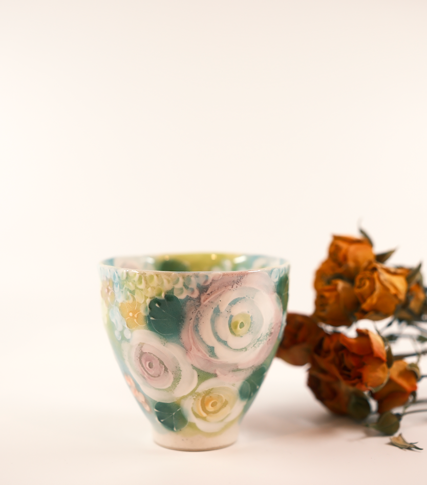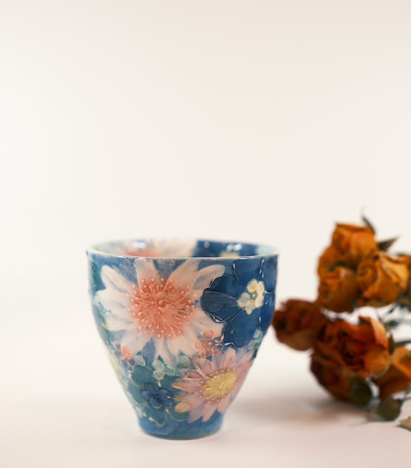 The artists primarily use hand-throwing techniques and underglaze painting, often depicting motifs of flowers, plants, and elements of nature. After being covered with a transparent glaze and fired, the designs become part of the vessel itself, creating soft colors that are both durable and safe for daily use.