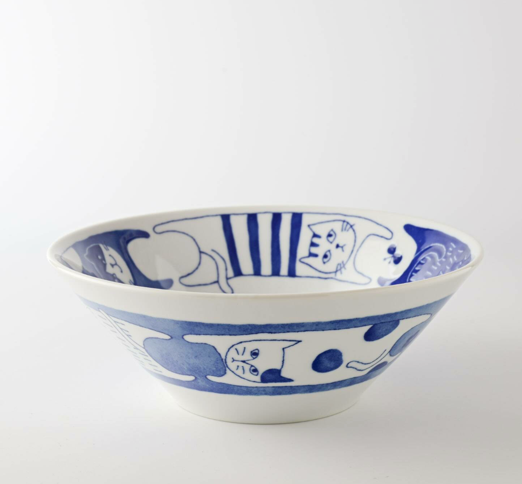This Mino Ware Cat Bowl features charming blue cat illustrations, making it an ideal choice for cat enthusiasts. Crafted with traditional techniques, the bowl combines aesthetic appeal with practical use. Its unique design adds a playful touch to your dining experience while serving as a delightful conversation piece for cat lovers. Perfect for enjoying ramen or other meals in style.